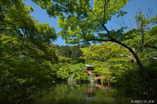 京都青もみじネタもう少し続きます 山科近辺を後にして、地下鉄を南に小野駅下車 西に歩いて勧修寺へこのお寺の呼び方は『かじゅうじ』と言うらしいです 境内に入ると青と赤のコラボが目に入ります 綺麗なフォルムの観音堂 氷室の池には睡蓮も咲きだしていま…